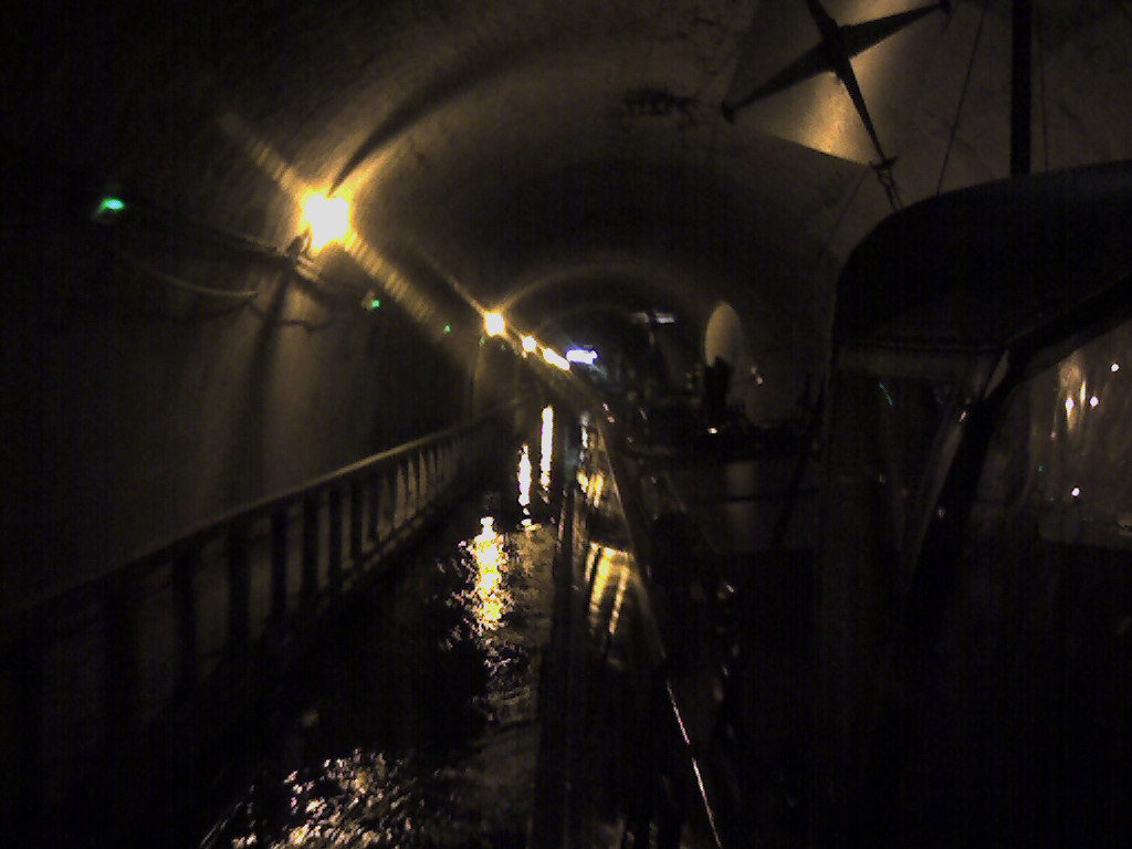 The canal also has a long tunnel but this time as we are the only boat we are allowed to do the 4km run under our own steam, simply following the towboat through incase we get lost. The little train is a left over from how it used to be done